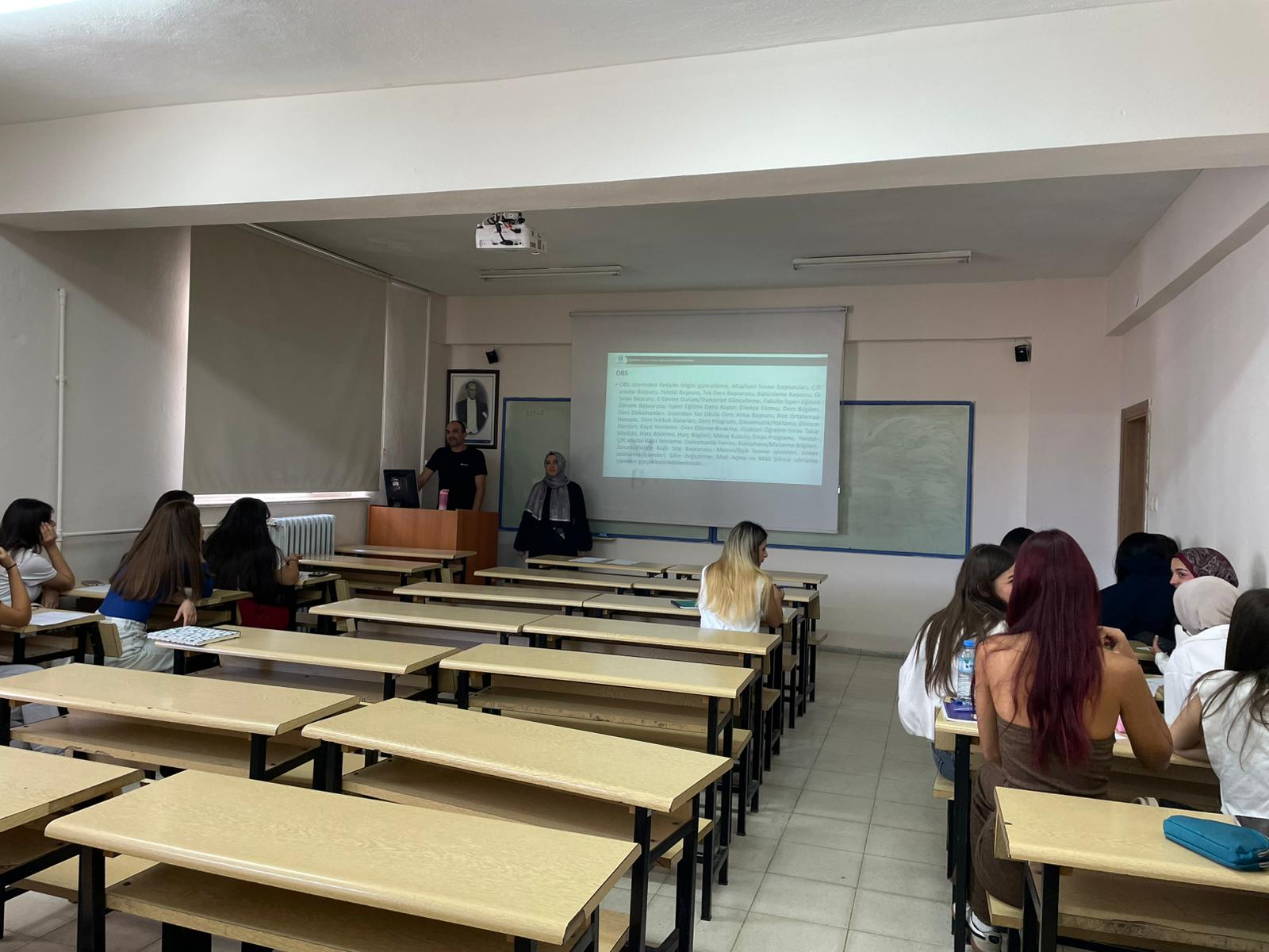 Oryantasyon kapsamında; öğrencilerin kayıtlı oldukları programların amacı, gelişimi, eğitim süreci ve mezuniyet sonrası istihdam alanları hakkında detaylı bilgi verildi. Ayrıca akademik takvim, sınav sistemleri, ders muafiyetleri, yatay geçiş imkanları, başarı notu ve genel not ortalaması hesaplamaları gibi akademik işleyişe dair önemli başlıklar öğrencilere aktarıldı.