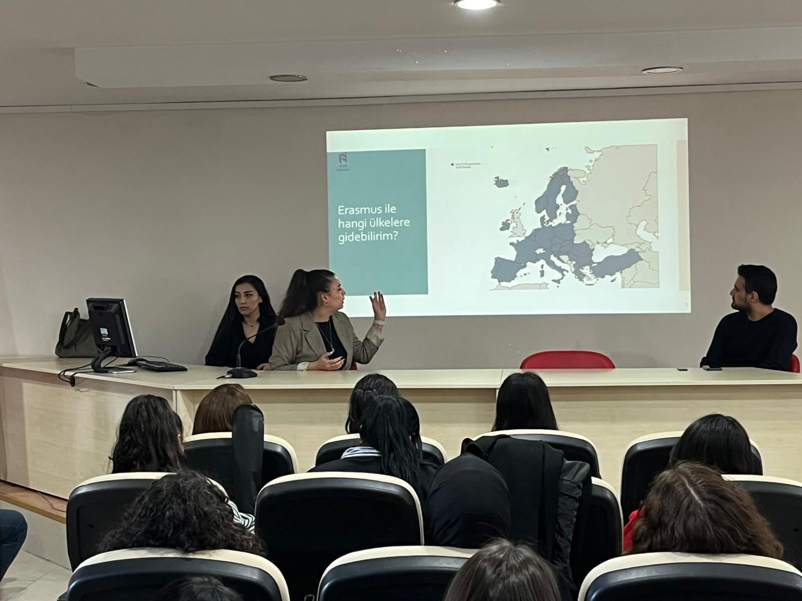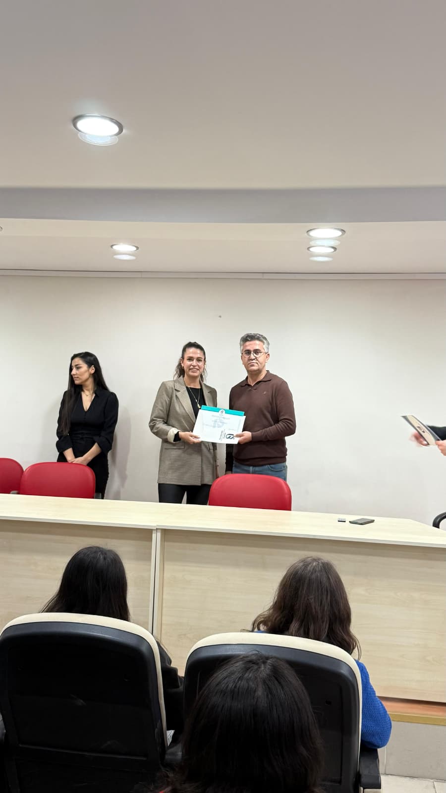 Üniversitemiz Erasmus Koordinatörlüğünden Öğr. Gör. Elif TURHAN ve Öğr. Gör. Dr. Yeliz TÜRKOĞLU’nun konuşmacı olarak yer aldıkları konferansta Erasmus öğrenim ve staj hareketliliği, başvuru şartları ve süreç hakkında önemli bilgiler aktarıldı. Öğrenci ve Akademik personelimizin yoğun ilgi gösterdikleri ve sorularının cevaplandığı konferansın ardından, Yüksekokulumuz Müdürü Dr. Öğretim Üyesi Gürkan KALKAN ve Muhasebe ve Vergi Bölüm Başkanı Dr. Öğr. Üyesi Serhat DURANAY tarafından misafirlerimize teşekkür belgeleri takdim edildi.