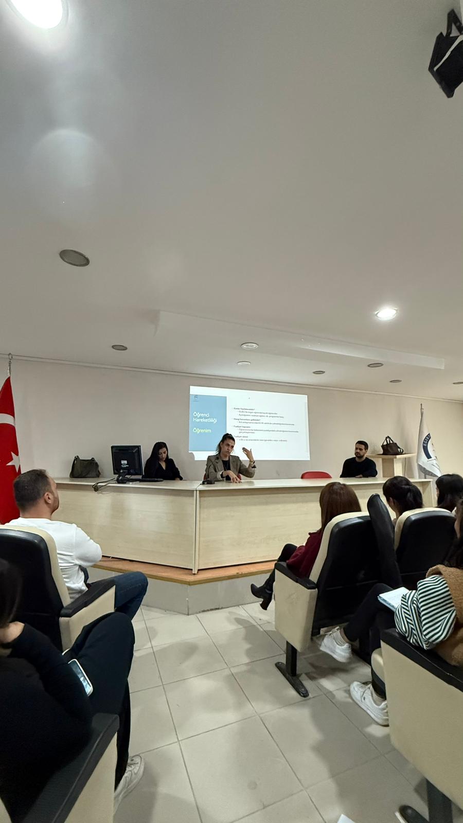Yüksekokulumuzda 10.12.2025 tarihinde Şehit Komiser Osman DEMİR Konferans Salonunda Erasmus Bilgilendirme Toplantısı adlı konferans gerçekleştirildi. Muhasebe ve Vergi Bölümü tarafından düzenlenen konferansa Meslek Yüksekokulumuzun çeşitli bölümlerinden birinci ve ikinci sınıf öğrencileri ileMeslek Yüksekokulu Müdürü Dr. Öğr. Üyesi Gürkan KALKAN , Müdür Yardımcısı Öğr. Gör. Murat GELERİ, Dr. Öğr. Üyesi Hatike KOÇAR UZAN, Dr. Öğr. Üyesi Serhat DURANAY, Öğr. Gör İbrahim DEMİRTAŞ ve Öğr. Gör. Ahmet BÜYÜKKÜPCÜ katılım sağladılar.